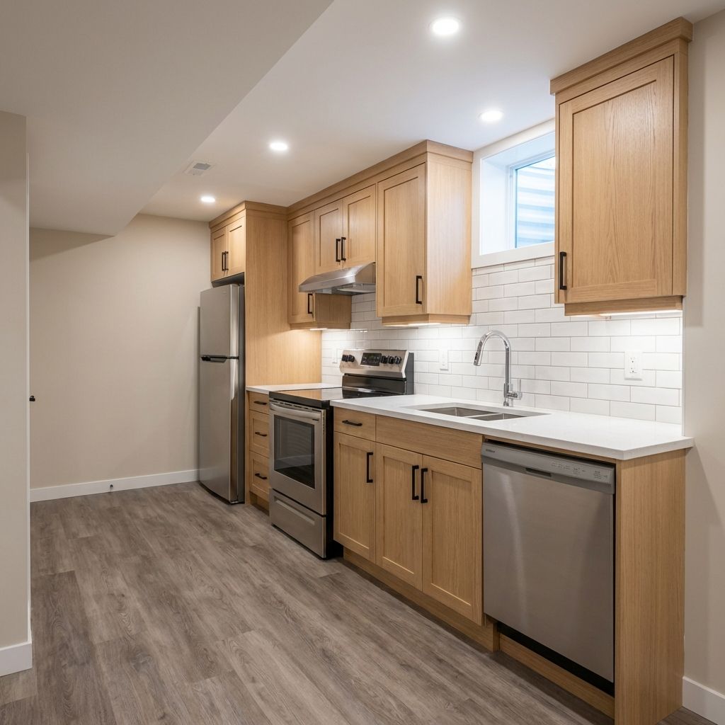 Standard compliant legal basement suite design maximizing rental income
